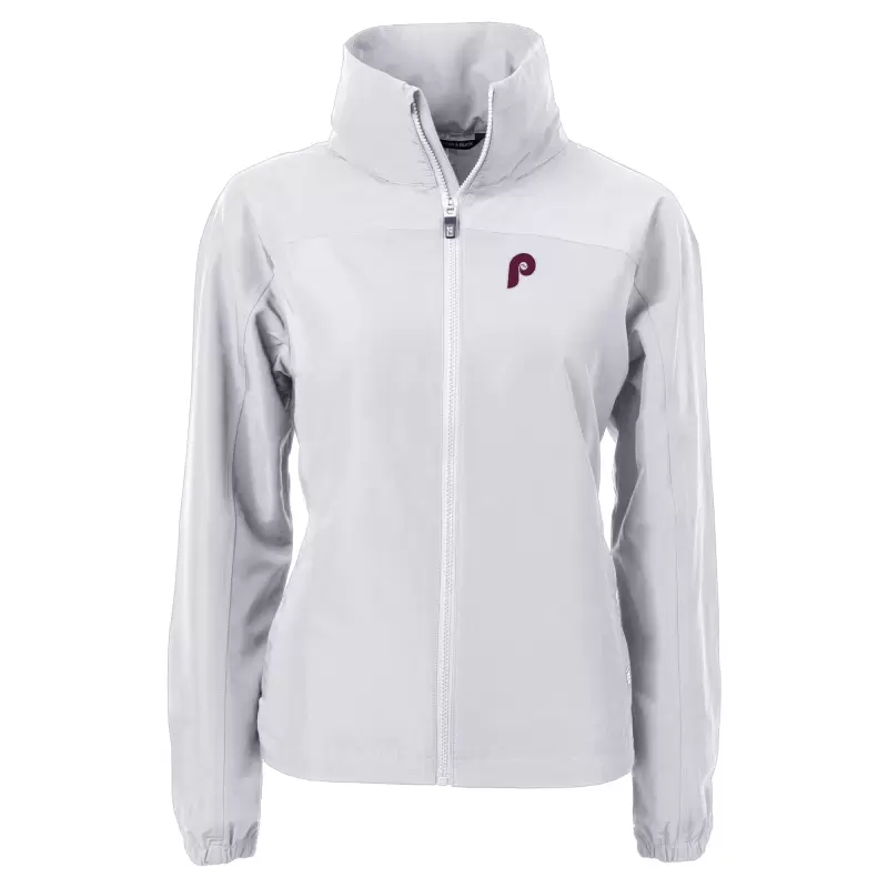 Celebrate the Philadelphia Phillies in sustainable style with this Cutter & Buck Charter Eco Recycled Full-Zip Jacket. This water-resistant jacket is made from recycled polyester and features an attached packable pouch, making it perfect for travel. It also includes a stowable hood for extra weather protection and an adjustable elastic drawcord at the hem for a customizable fit. Whether you’re cheering on the Philadelphia Phillies from the stands or out on the town, this jacket is a comfortable way to show your pride anywhere your travels may take you.