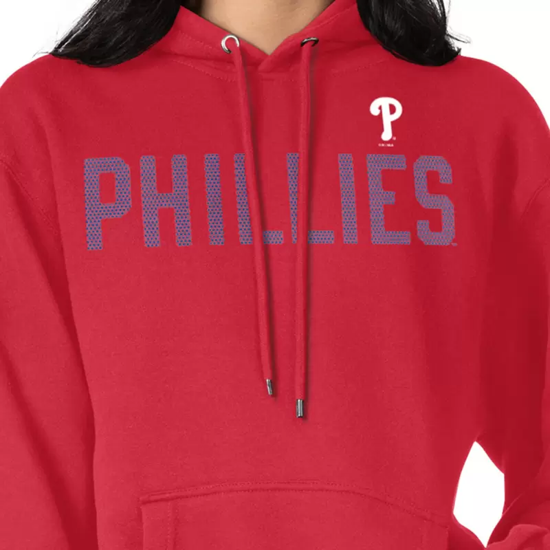 The Women’s G-III 4Her by Carl Banks Red Philadelphia Phillies Dot Print Pullover Hoodie is the perfect way to show your support for the Philadelphia Phillies. Made from a comfortable cotton, polyester, and recycled polyester blend, this midweight hoodie is perfect for moderate temperatures. Screen print graphics and a front pouch pocket add a touch of style, while the Philadelphia Phillies logo proudly displays your team spirit. Whether you’re cheering on the Phillies at the stadium or relaxing at home, this hoodie is sure to keep you comfortable and stylish.