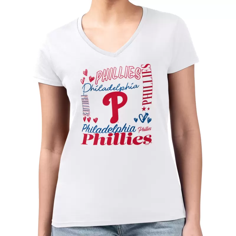 Women’s Philadelphia Phillies G-III 4Her by Carl Banks White Super-Slim Fit Lightweight Collage Team Graphic V-Neck T-Shirt