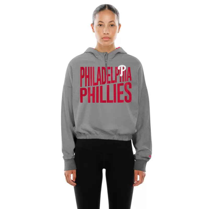 Home / Shop / Abc / Women’s Philadelphia Phillies New Era Heather Gray Reversed Out French Terry Quarter-Zip Banded Crop Hoodie
