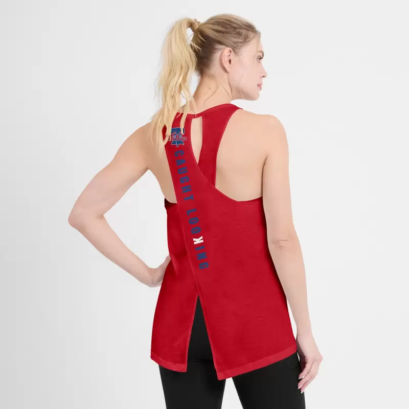 Step up your Philadelphia Phillies style with this Open-Back Crisscross Dri-FIT Tank Top by Nike. Its crossed, open-back design provides a fashionable look and cooling feel. Made from breathable jersey knit fabric with sweat-wicking technology, this Philadelphia Phillies tank keeps you dry and comfortable at the ballpark or on the go.